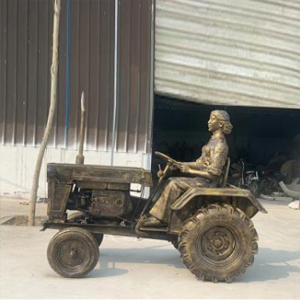 开拖拉机雕塑 人物玻璃钢材质 拖拉机铁艺材质
