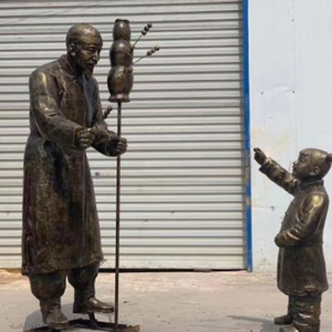 老奶奶讲故事 玻璃钢仿铜民俗生活人物