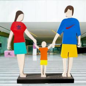 一家三口购物 铁艺商场美陈摆件 剪影