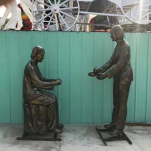 敬茶 玻璃钢仿铜民俗生活人物